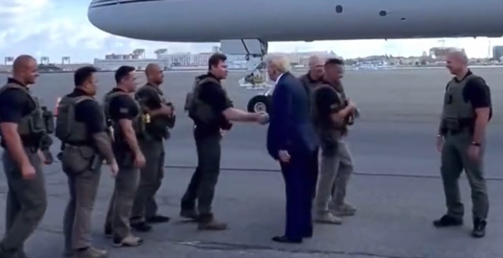 Trump arrived in Massachusetts and was greeted by a group of law enforcement officers who wanted to shake his hand.