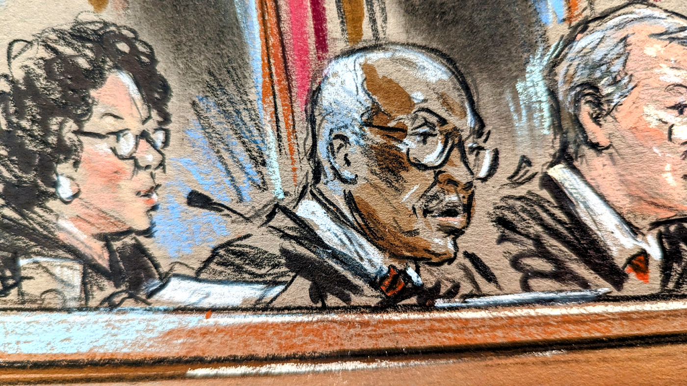 Justice Clarence Thomas delivering the opinion in Ohio Adjutant Generalâs Department v. Federal Labor Relations Authority from the bench. (William Hennessy)